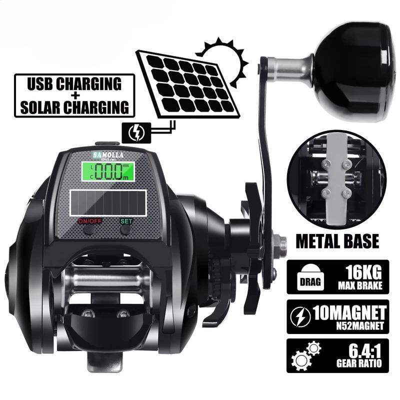 Новый большой цифровой дисплей с электронным экраном, водонепроницаемая рыболовная катушка для ловли сома на глубоководном льду, солнечная батарея + USB зарядка, металлическое основание