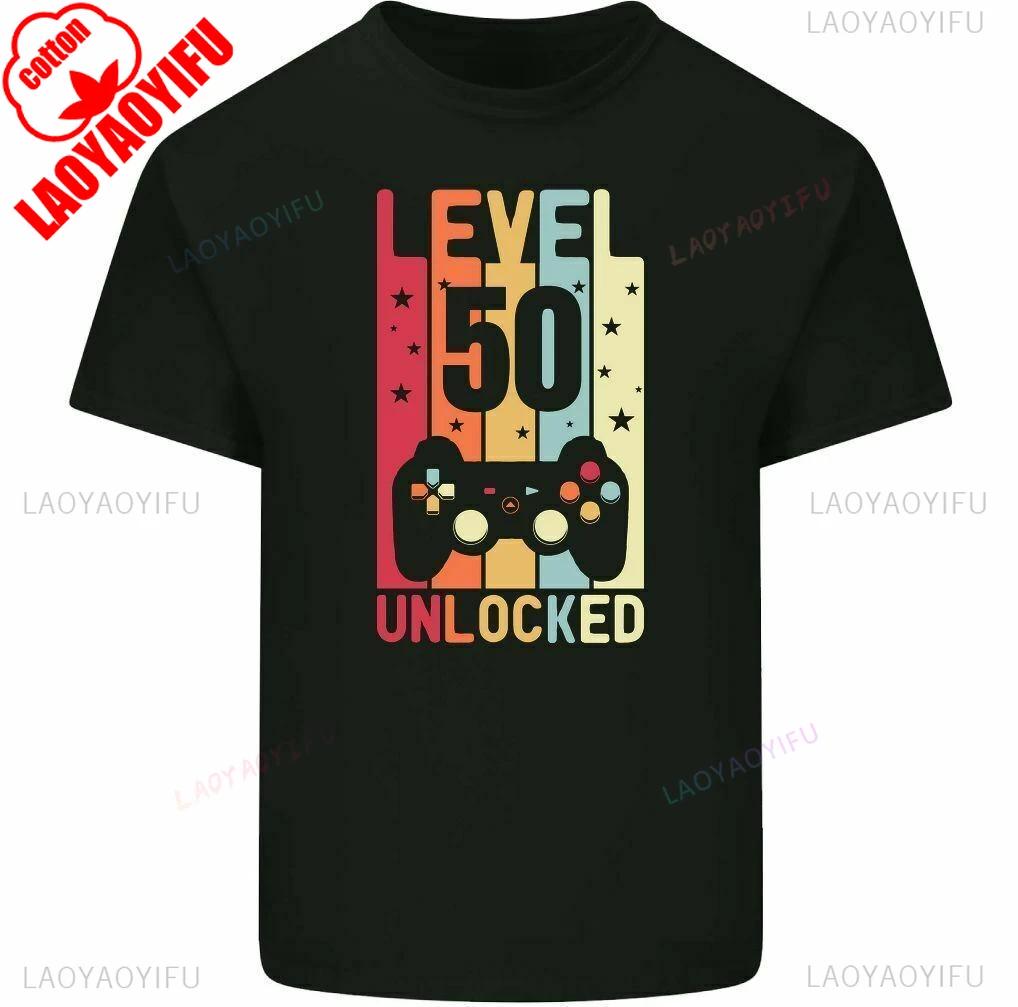 Футболка на 50-летие 1975 Мужская Смешная УРОВЕНЬ РАЗБЛОКИРОВАН 50 Лет Игровая Футболка Топы Графические Футболки Мужская Одежда Хлопковые Рубашки