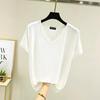 Женская модальная футболка с V-образным вырезом большого размера - Короткий рукав, Свободный крой, Тонкий слой, Корейский стиль