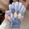 Шерстяные теплые перчатки для женщин на осень и зиму с сенсорным экраном для езды на велосипеде, милые зимние для велоспорта, для студентов, с пятью пальцами, плюс бархатные вязаные перчатки