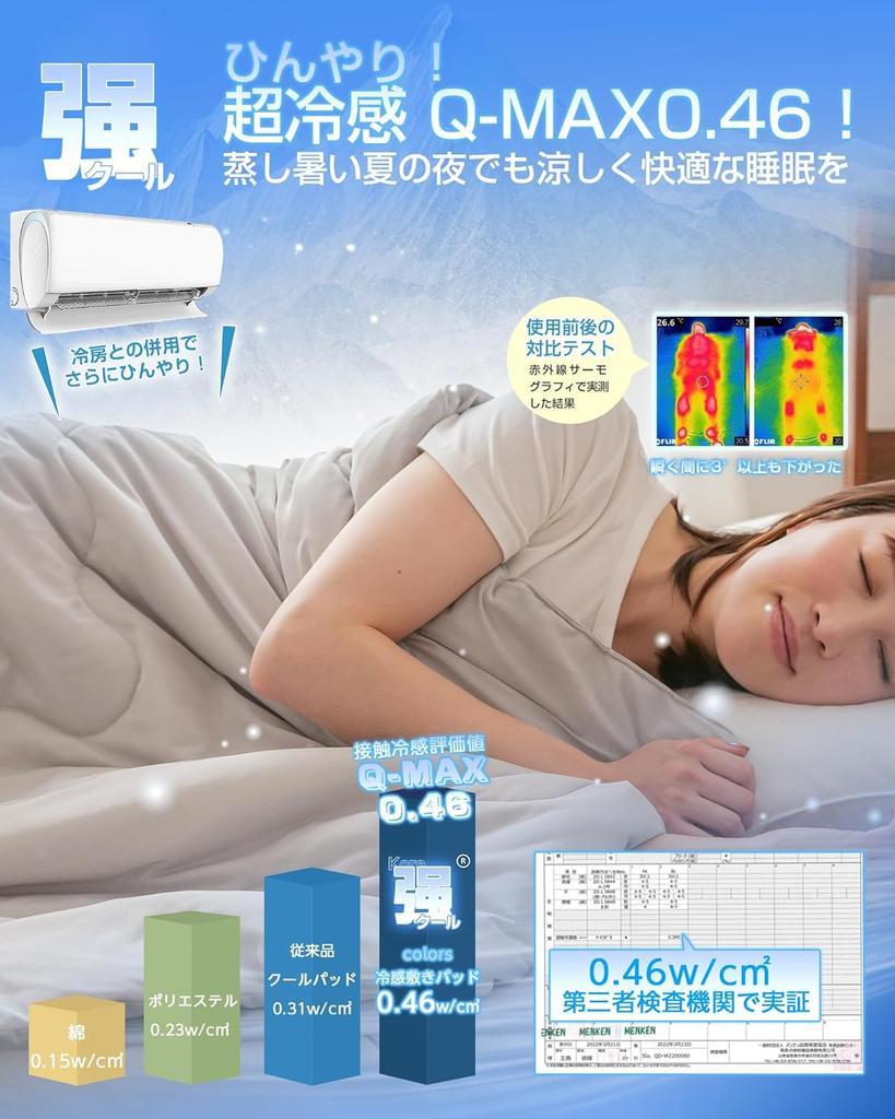 [Прохладный! Супер Крутой Q-MAX0.46!] В этом продукте используется нейлоновая ткань Q-MAX0.46, охлаждающий материал. Нейлоновые волокна обладают высокой теплопроводностью, поэтому вы можете почувствовать прохладу в момент прикосновения к коже, и они поглощают тепло тела, так что вы можете почувствовать прохладу в момент, когда ложитесь в постель! Поскольку химические вещества не используются, охлаждающий эффект сохранится полупостоянно даже после многократных стирок, поэтому даже маленькие дети могут использовать его с уверенностью.