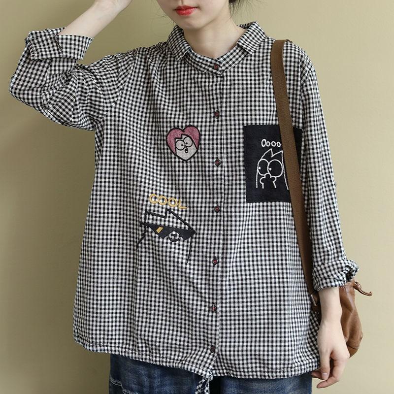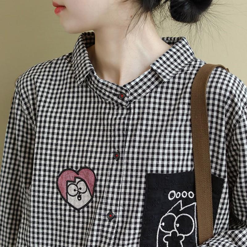 Женская повседневная рубашка в корейском стиле с винтажной клетчатой вышивкой и рисунком большого размера для женщин, блузки, рубашки