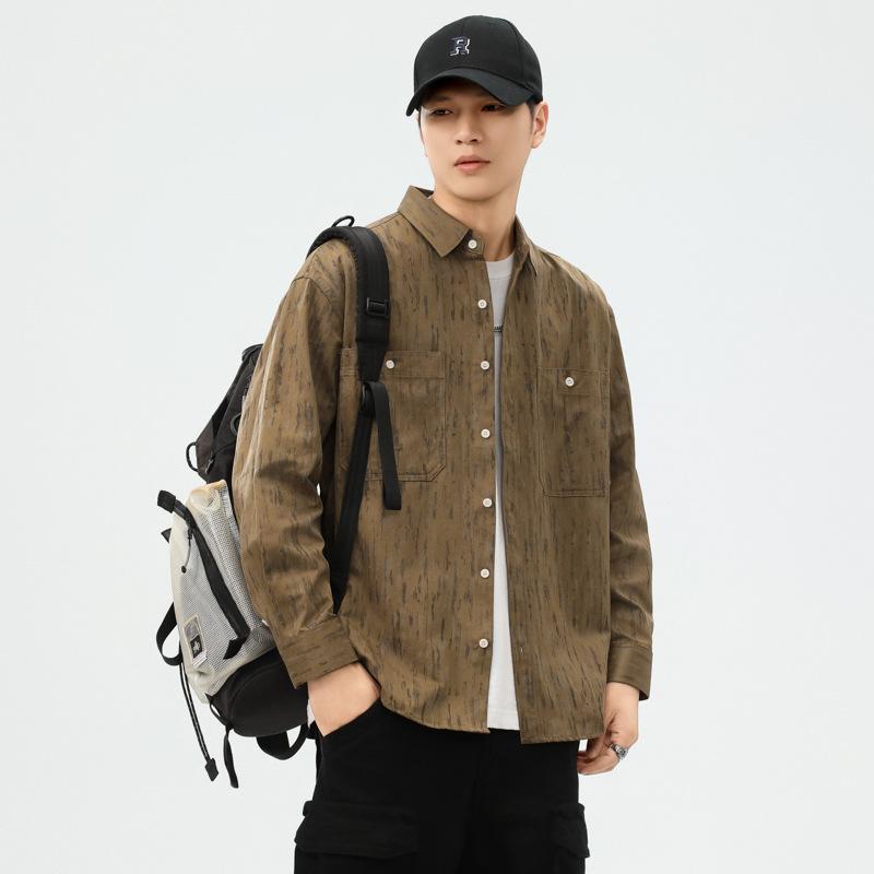 Новая американская ретро свободная повседневная мужская рубашка с принтом в вертикальную полоску, куртка с длинными рукавами