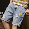 Мужские модные джинсовые шорты, свободные пятиточечные брюки, повседневные, большого размера, эластичная талия, с дырками, корейская версия, верхняя одежда, брюки средней длины