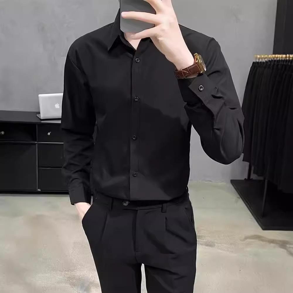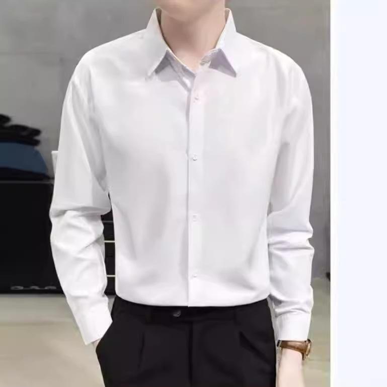 Корейская белая рубашка мужская с длинным рукавом, красивая, деловая, мужская профессиональная формальная рубашка, свадебная, повседневная белая рубашка