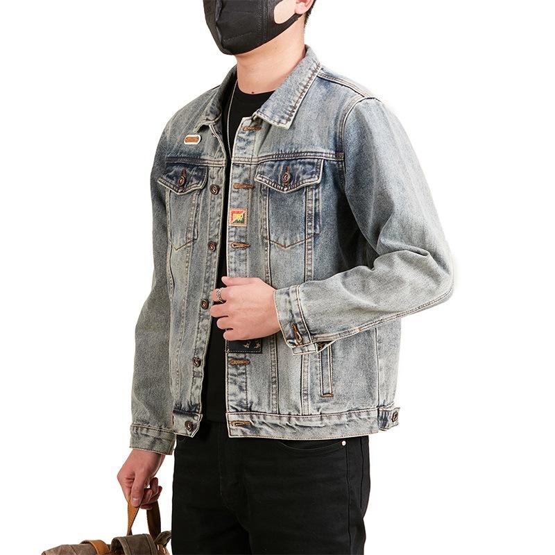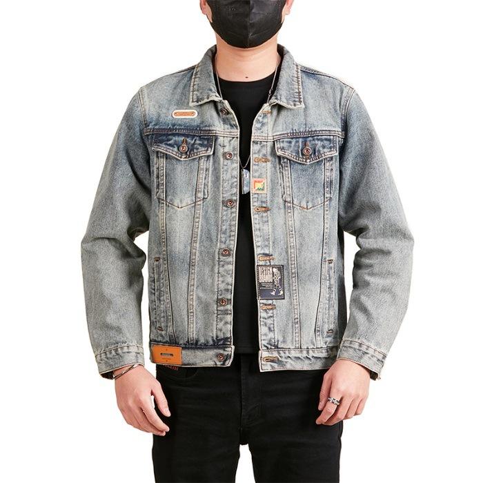 Новая джинсовая куртка мужская свободная с вышивкой медведя, ретро рабочая одежда, повседневный джинсовый топ