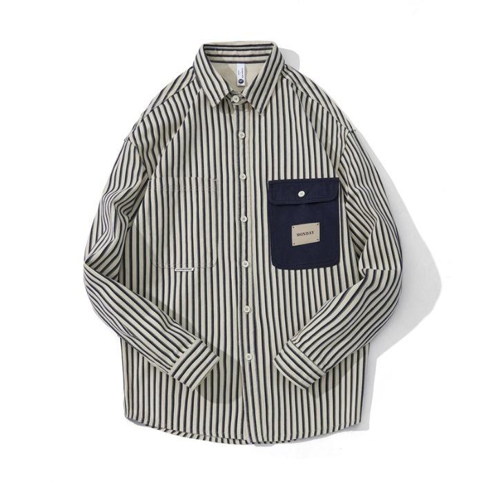 Новая весенняя ретро-рубашка с длинным рукавом в полоску из чистого хлопка для мужской верхней рубашки