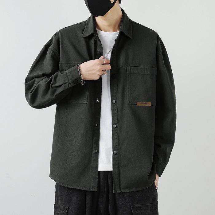 Ретро Рабочая рубашка с длинным рукавом Мужская Весенне-летняя из чистого хлопка Повседневный топ Мужской кардиган на подкладке
