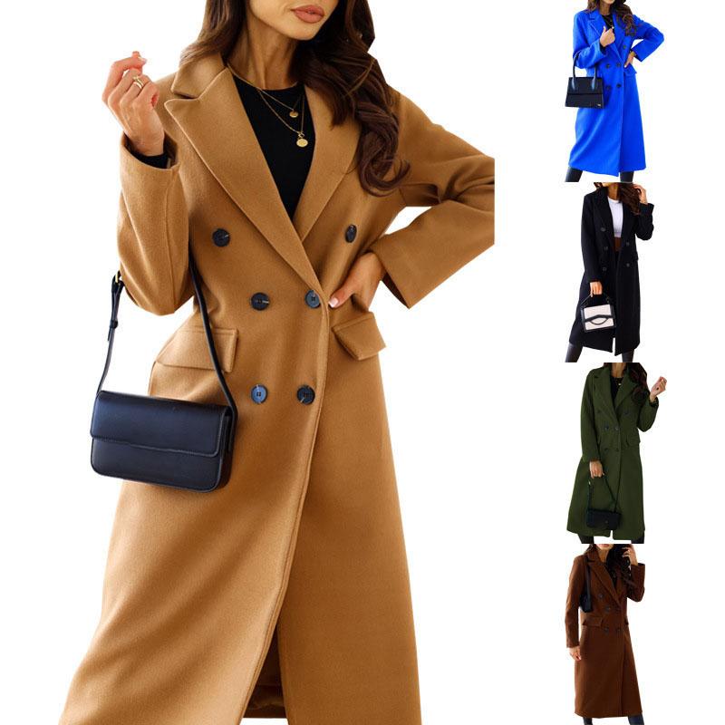 Осенне-зимняя женская европейская и американская шерстяная куртка средней длины с длинным рукавом, отложным воротником, свободного кроя, на пуговицах — купить товар онлайн с бесплатной доставкой по всему миру!