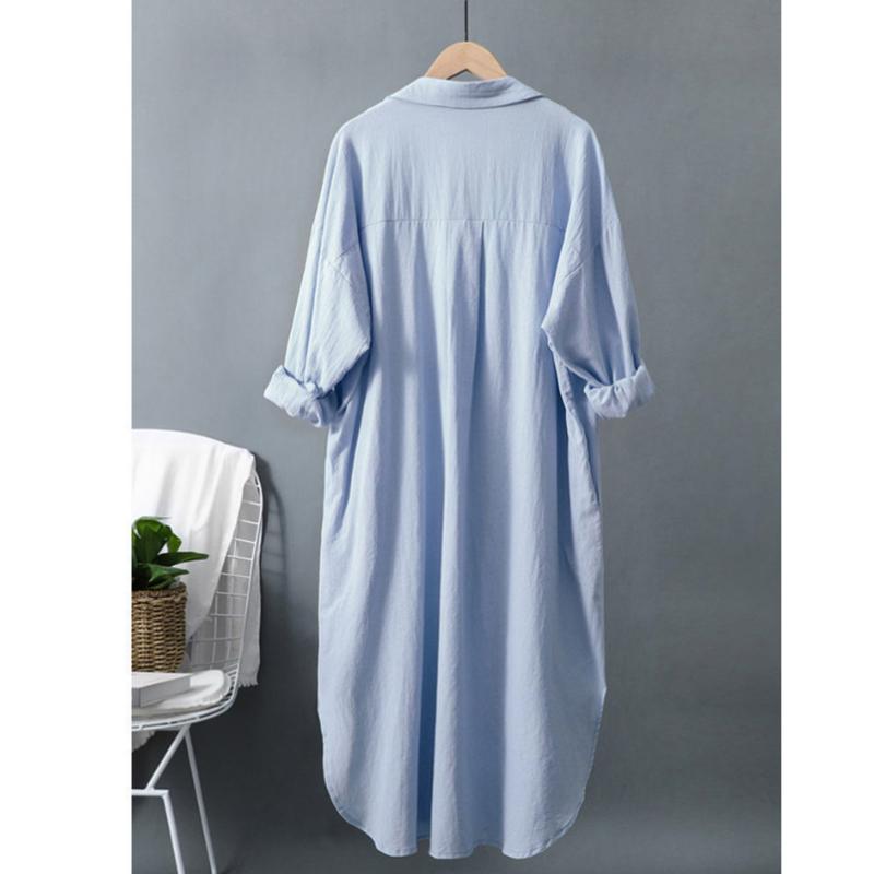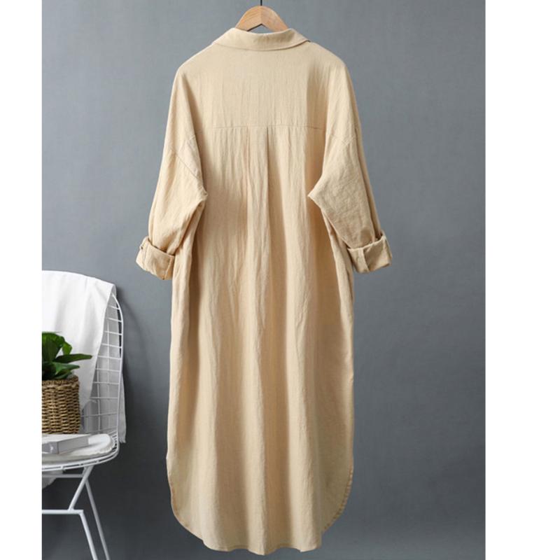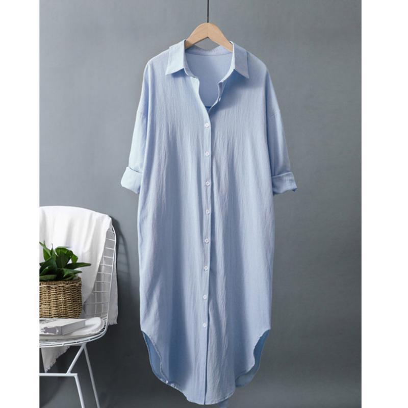 Водолазка Однотонный Повседневный Хлопок Длинный Рукав Сверхдлинная Рубашка Женская Блузка Рубашка Корейская Мода Одежда Топы Весна