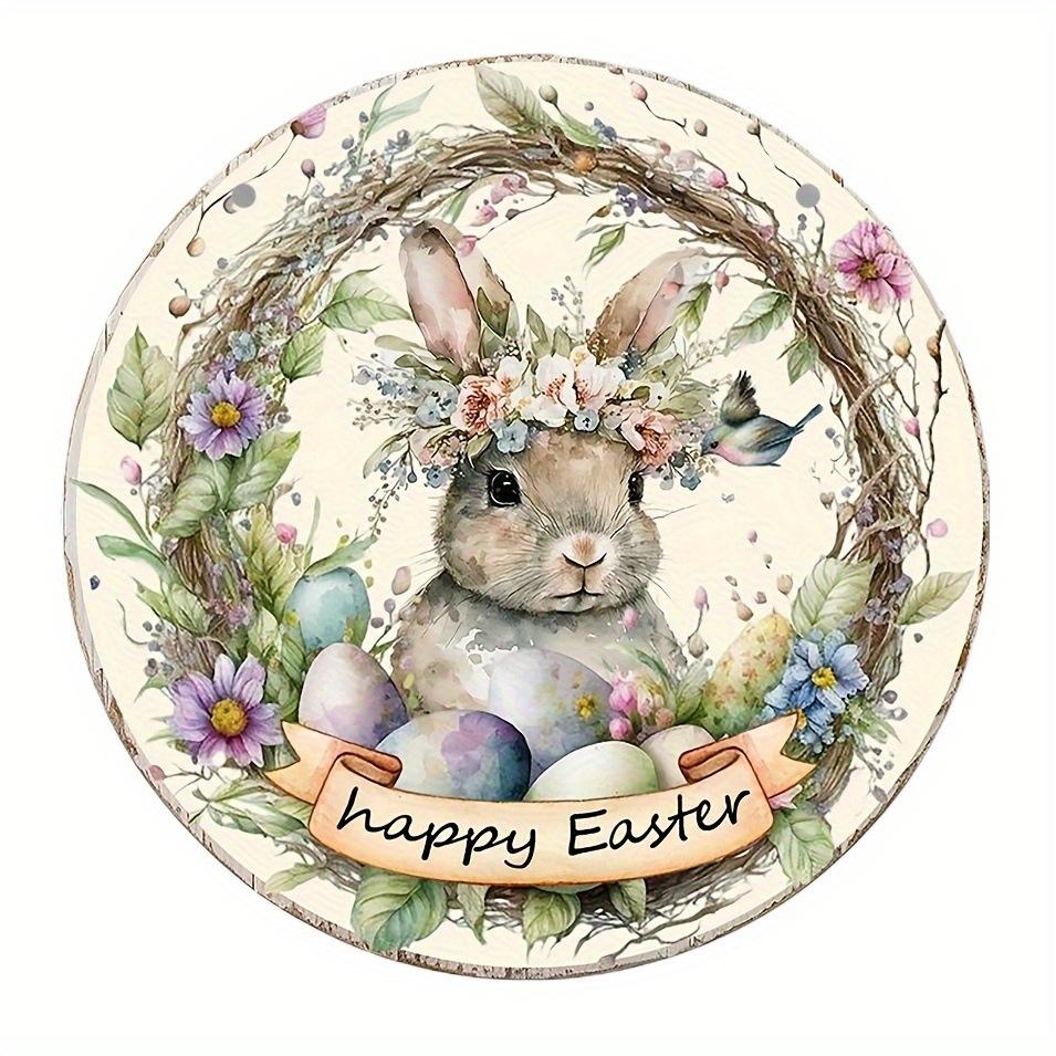 2d Плоский 20*20см, Пасхальное украшение, Счастливой Пасхи, Деревянное круглое настенное украшение, Мультяшный кролик пасхальное яйцо приветственный номер дома для дома, кухни