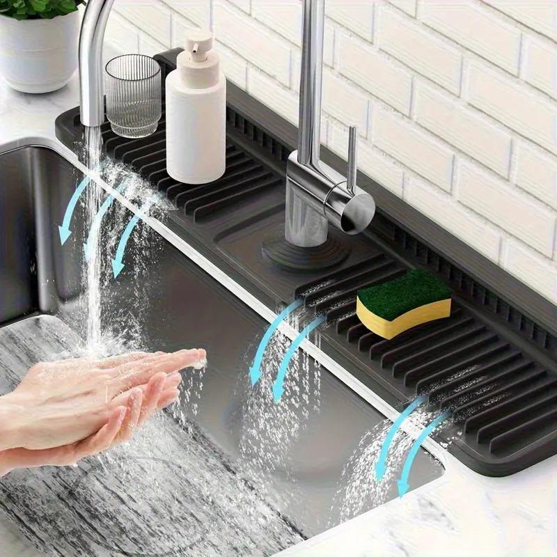 Складной силиконовый брызговик для кухонной раковины, с наклонной конструкцией 7° | Быстросохнущий коврик под смеситель