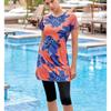 Летний цветочный купальный костюм 2025 с принтом - Комплект: туника с коротким рукавом и укороченные леггинсы - Мусульманский купальник - Пляжная одежда с защитой от УФ-лучей - Летний буркини — купить товар онлайн с бесплатной доставкой до всему миру!