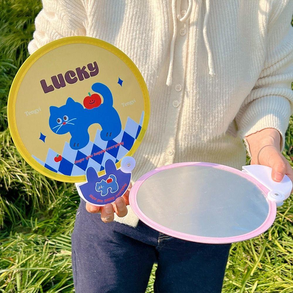 4 шт. Пластиковый милый складной веер Милый прохладный веер Креативный круглый карманный веер Студенческий