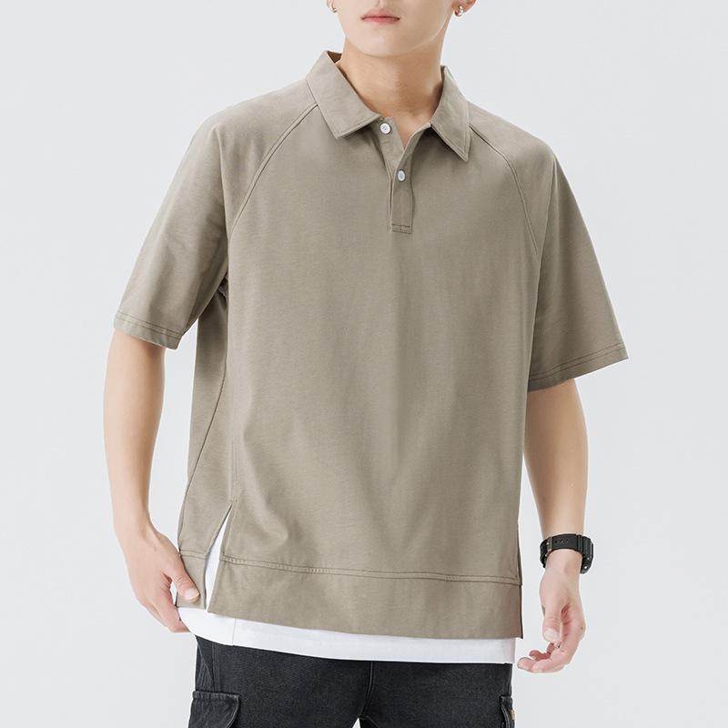 Летняя мужская рубашка ПОЛО с лацканами, с коротким рукавом, имитация двойки, мужской лацкан, тонкий короткий топ