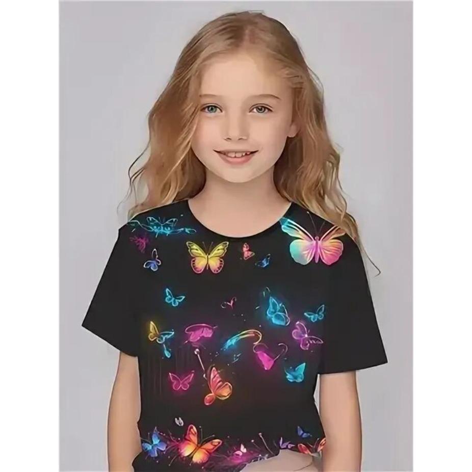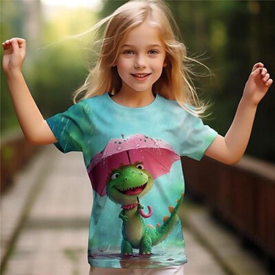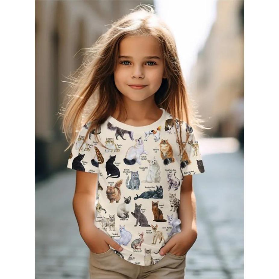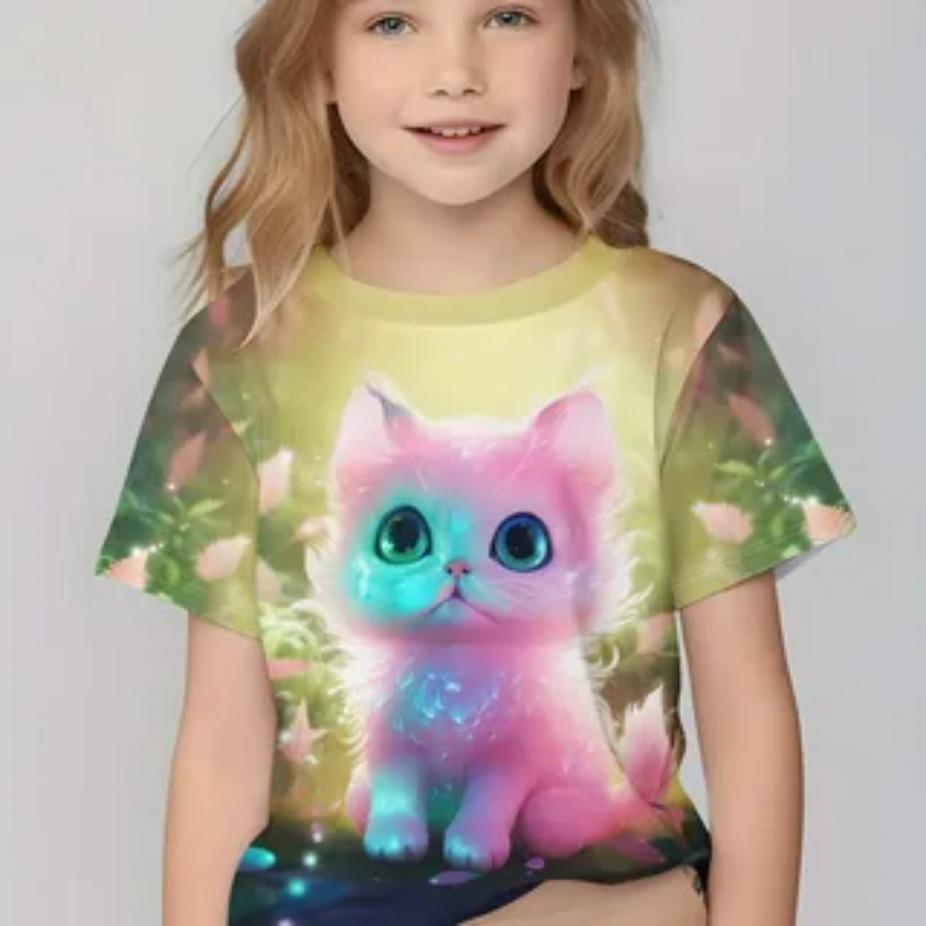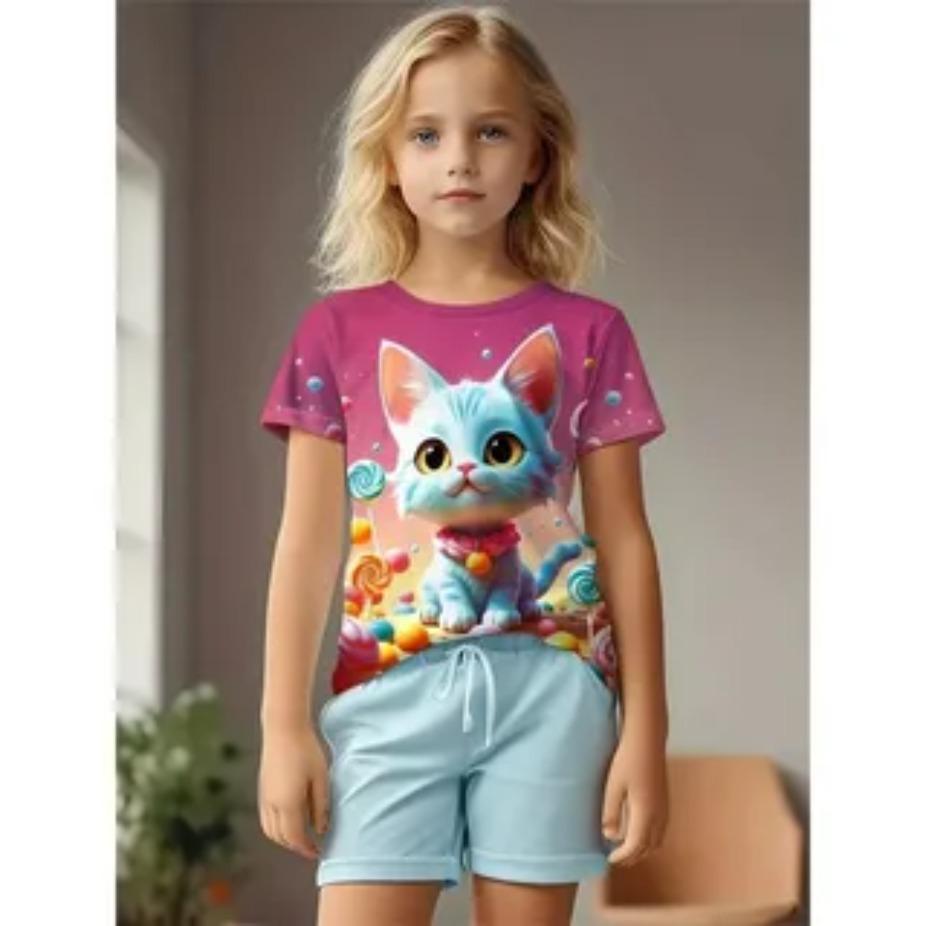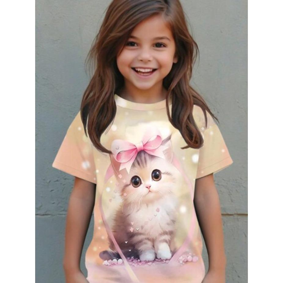Детские футболки с мультяшным рисунком, с коротким рукавом, с 3D-принтом, с круглым вырезом, топы из полиэстера, повседневная спортивная одежда, удобные футболки
