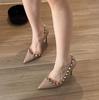 Женские туфли-стилеты с пустыми заклепками по бокам, темпераментные, профессиональные, из лакированной кожи нюдового цвета, с острым носком, сексуальные сандалии