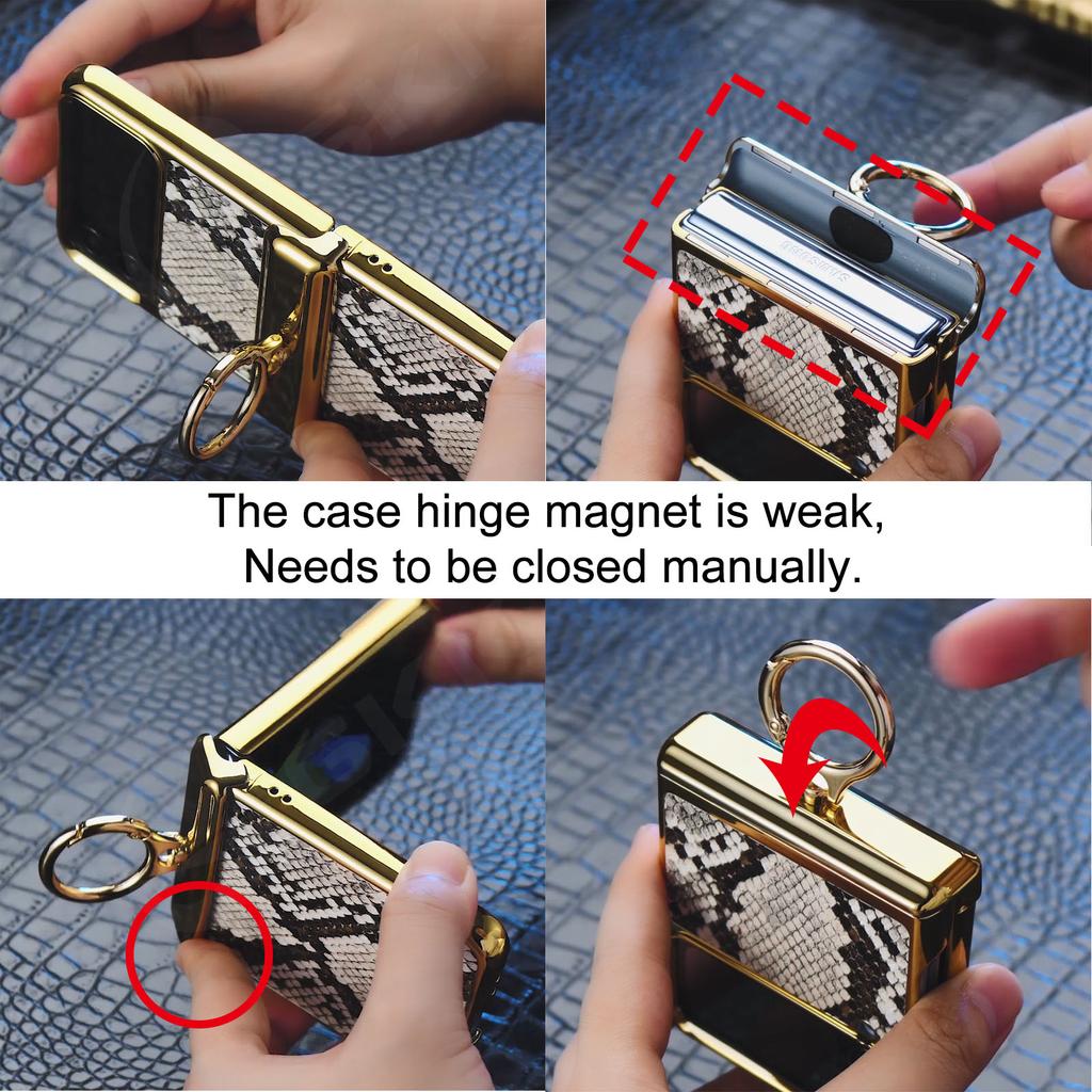 Роскошный кожаный чехол с гальваническим покрытием для Samsung Galaxy Z Flip 4, магнитный чехол с полным покрытием и держателем-кольцом на шарнире для Galaxy Z flip4