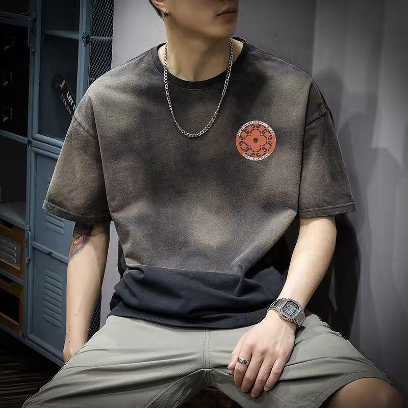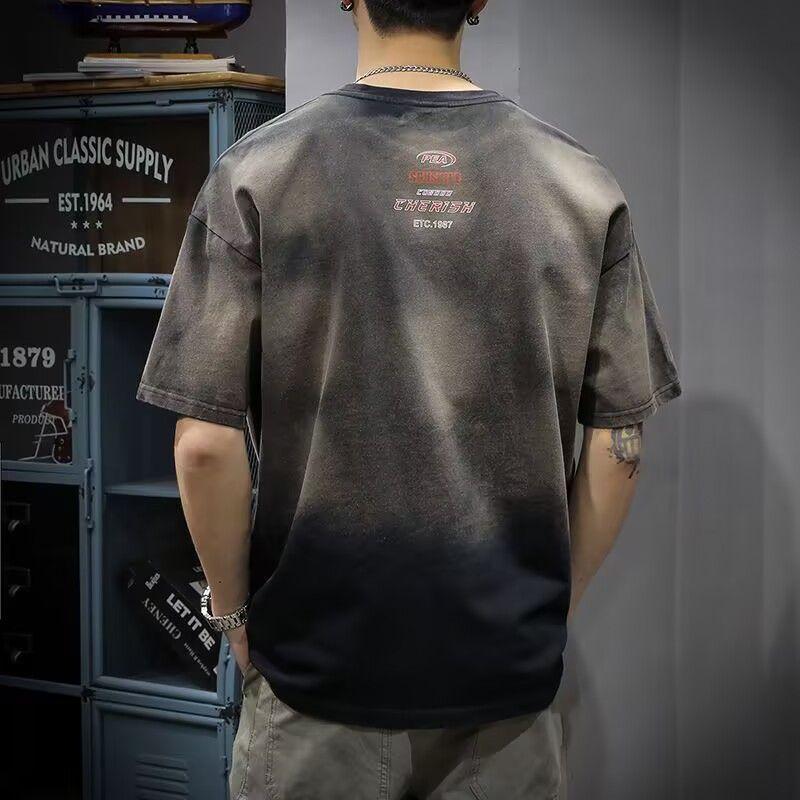 Винтажные американские пуловеры тай-дай летние с круглым вырезом мужская одежда повседневные с коротким рукавом стильные с принтом футболки в молодежном стиле новые