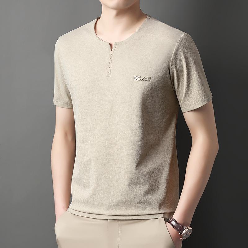 Men Ice Silk Short Sleeve Trend T Shirt V Neck Summer Casual Fashion Top