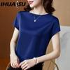IHUASU Женские модные повседневные однотонные блузки и рубашки с коротким рукавом и круглым вырезом с принтом