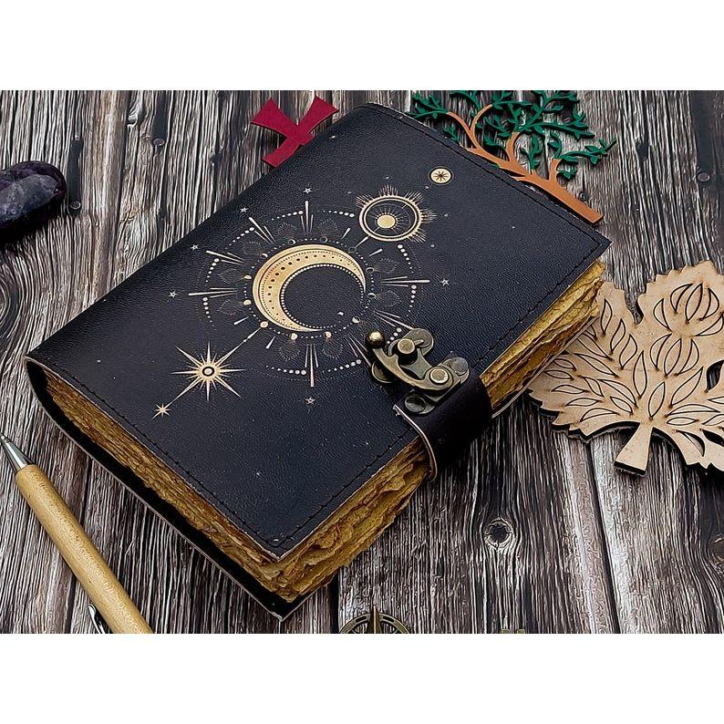 Кожаный блокнот Sun Moon для мужчин и женщин, 200 страниц антикварной бумаги ручной работы с неровным краем, винтажный скетчбук для путешествий