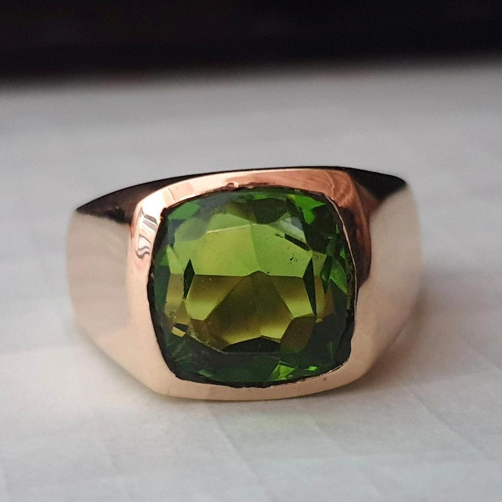 Кольцо из стерлингового серебра 925 с накладкой из розового золота и зеленым перидотом огранки «кушон»