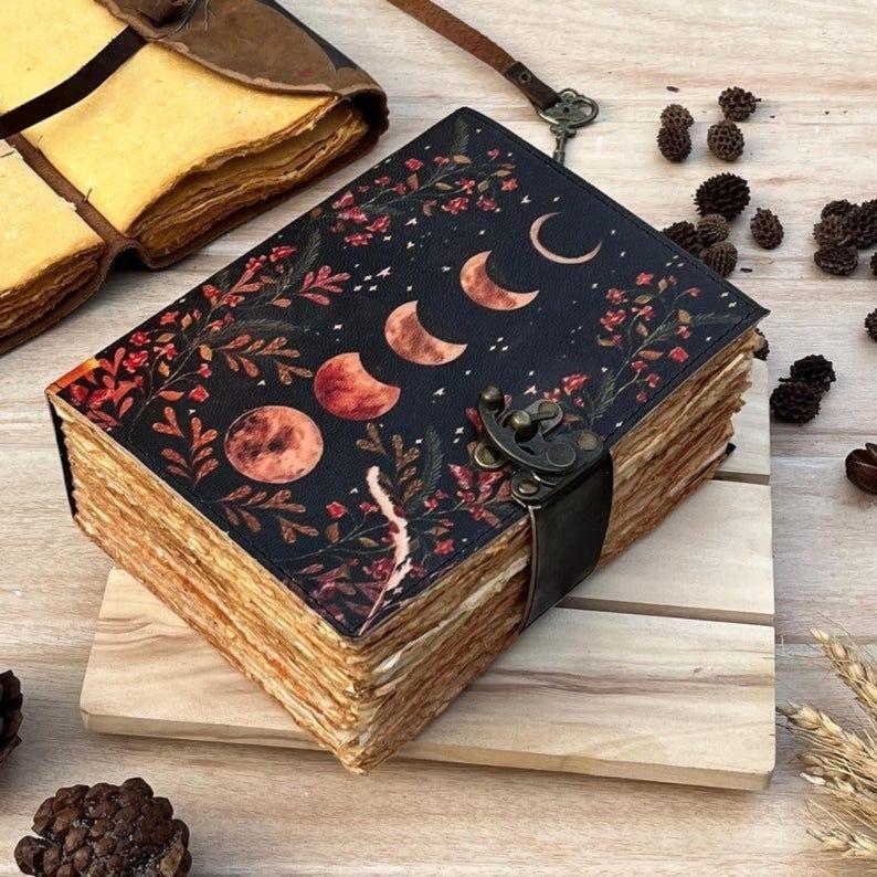 Кожаный журнал ручной работы «Фазы Луны» - Винтажный гримуар с бумагой ручной работы | Колдовство, Книга заклинаний, Лунный дневник, Подарок для женщин и мужчин