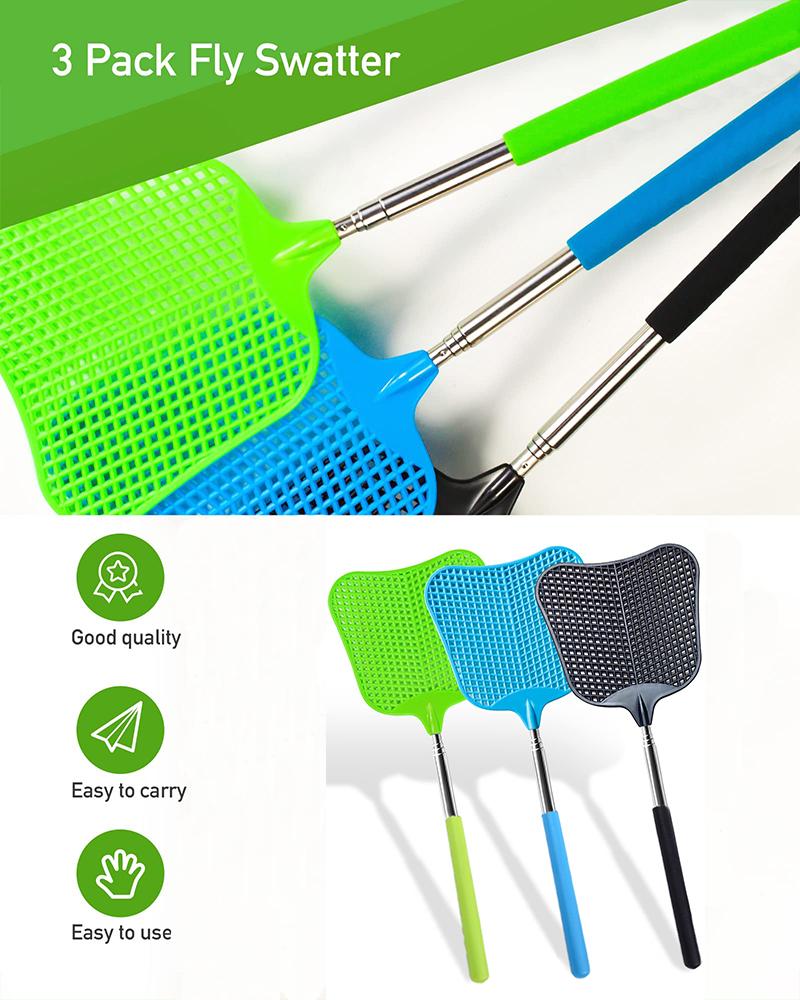 Телескопическая мухобойка Пластиковая большая мухобойка, которая работает, с выдвижными ручками из нержавеющей стали для использования в помещении и на улице