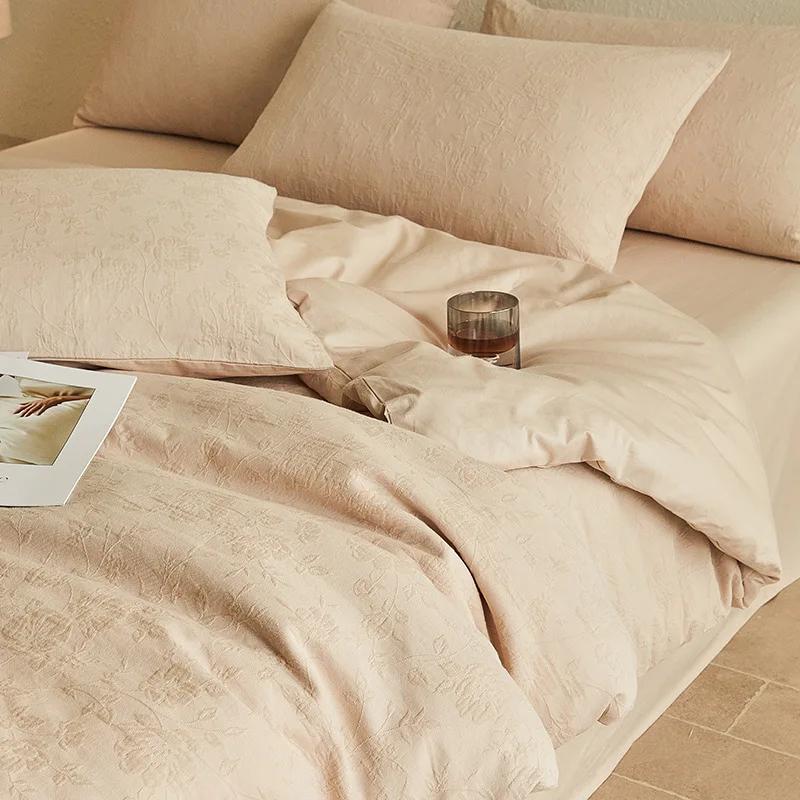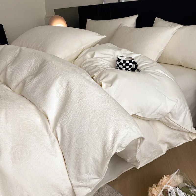 Легкий Роскошный Мягкий Плотный 100% Хлопок Комплекты Простыней Сатин Жаккард Шелковистый Постельный Комплект на Сезоны Односпальная Двуспальная Кровать Комфортный Комплект
