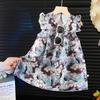 Летняя одежда для девочек 2025 новый стиль платье-жилет, шифоновое платье с цветочным принтом для девочек, детское платье