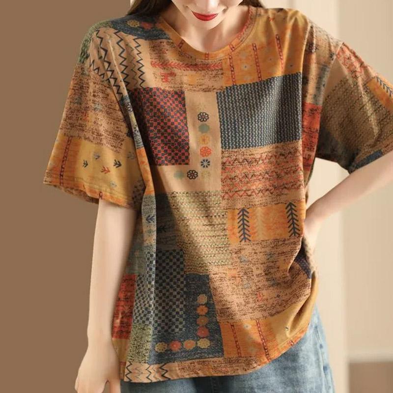 Женская футболка Летняя Большого размера Хлопковая футболка Мягкая Свободная Принтованная Повседневная Футболка Пуловер Топ