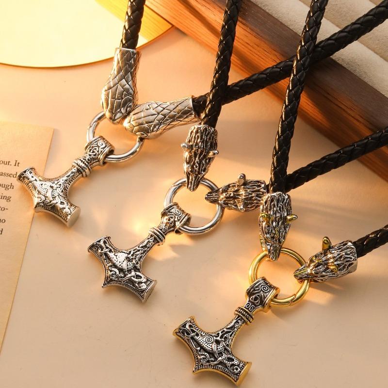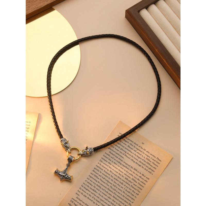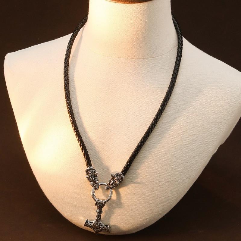Молот Бога Грома Подвеска Ожерелье Голова Кельтского Волка Мужское Плетеное Кожаное Ожерелье