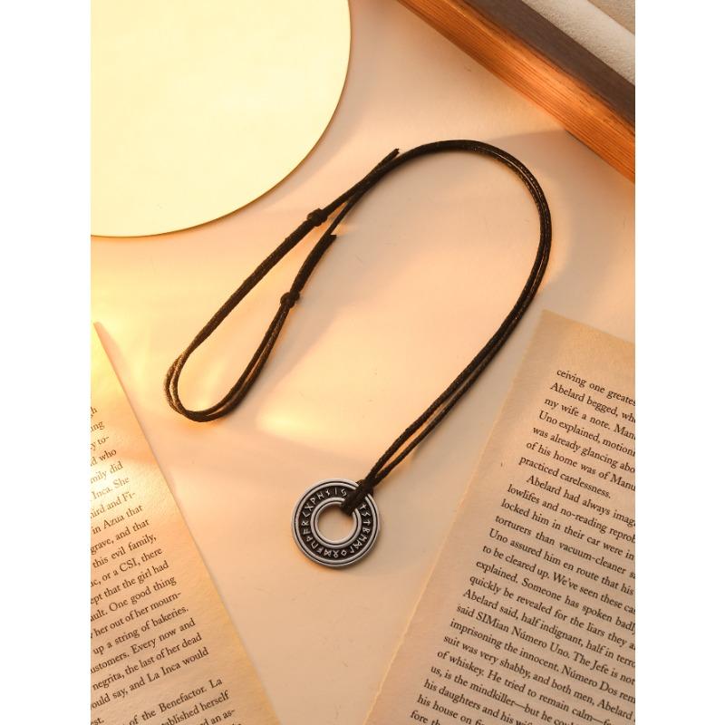 Ретро Круглая Подвеска из Титановой Стали Ожерелье Цепочка для Свитера Регулируемое Ожерелье