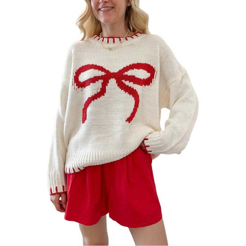 Новый пуловер в непринужденном стиле, вязаный топ с жаккардовым узором в виде банта, свободный свитер для женщин