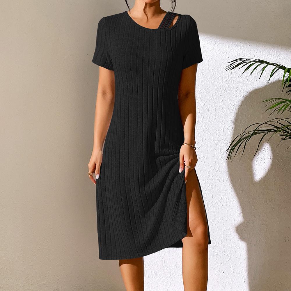 Однотонное Сексуальное Тренд Разрез Приталенное Обтягивающее Бедра Платье с Коротким Рукавом Мода для Женщин Платье