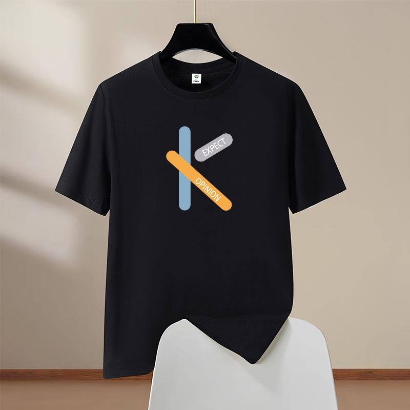 K Мужская футболка из 100% хлопка с коротким рукавом, оверсайз, с круглым вырезом, повседневная