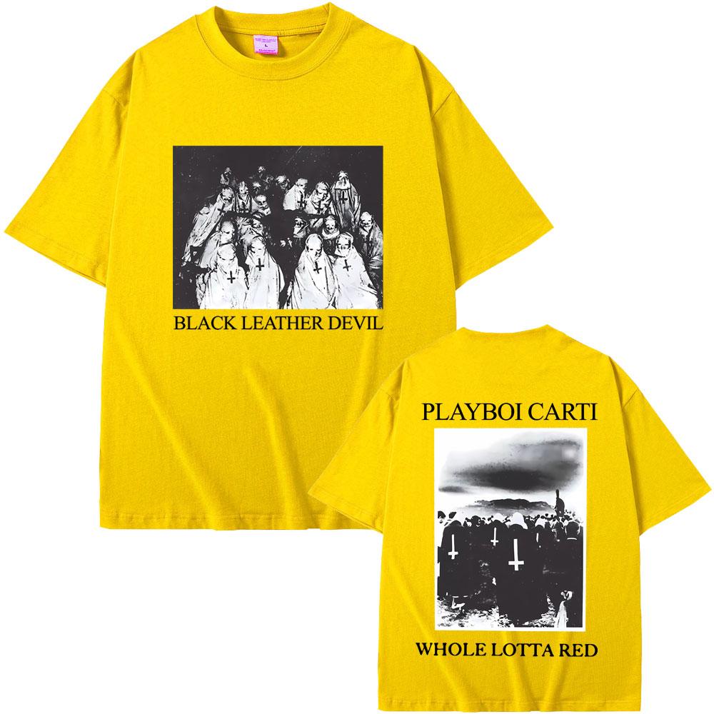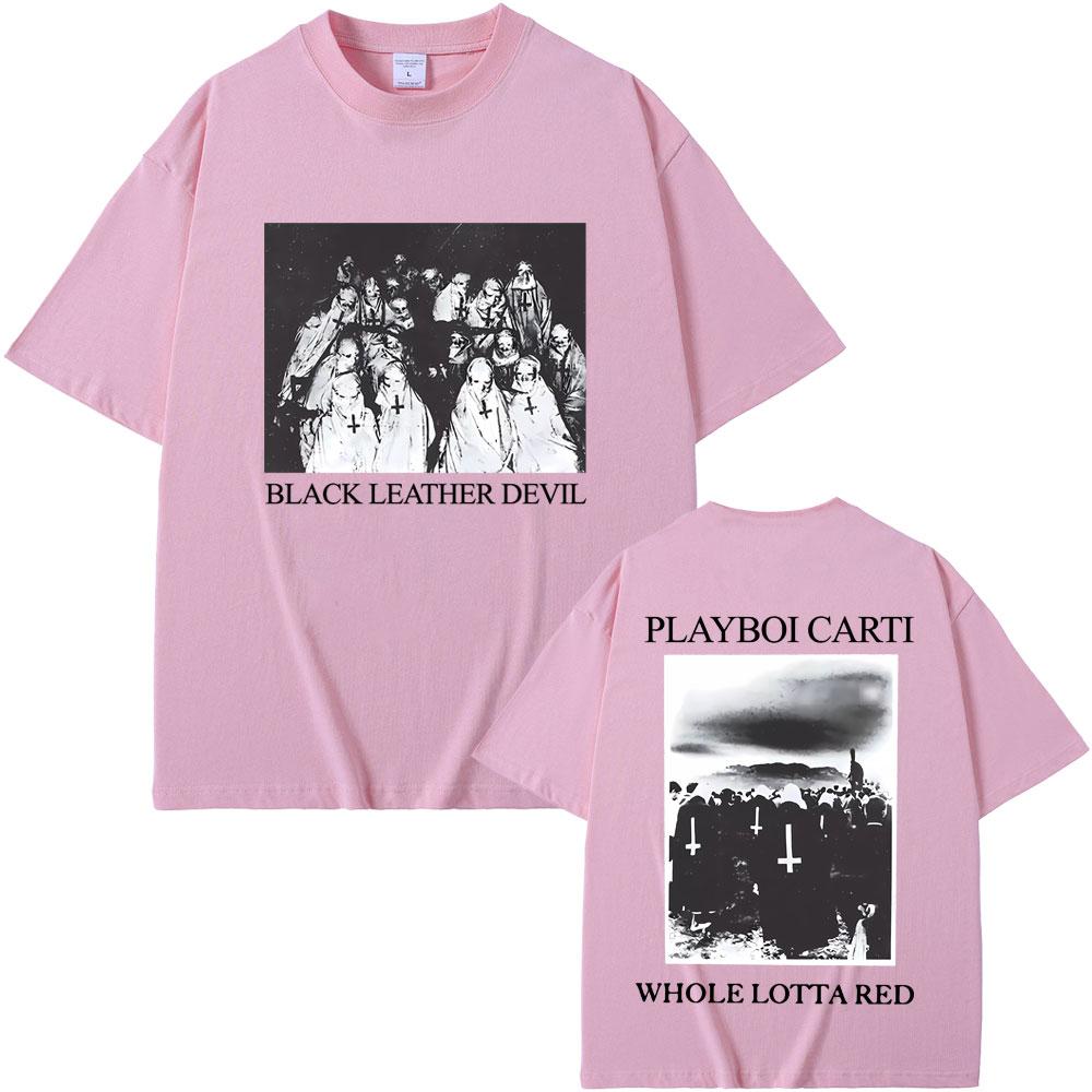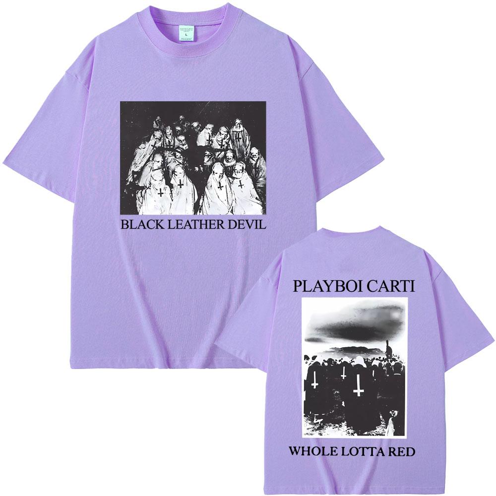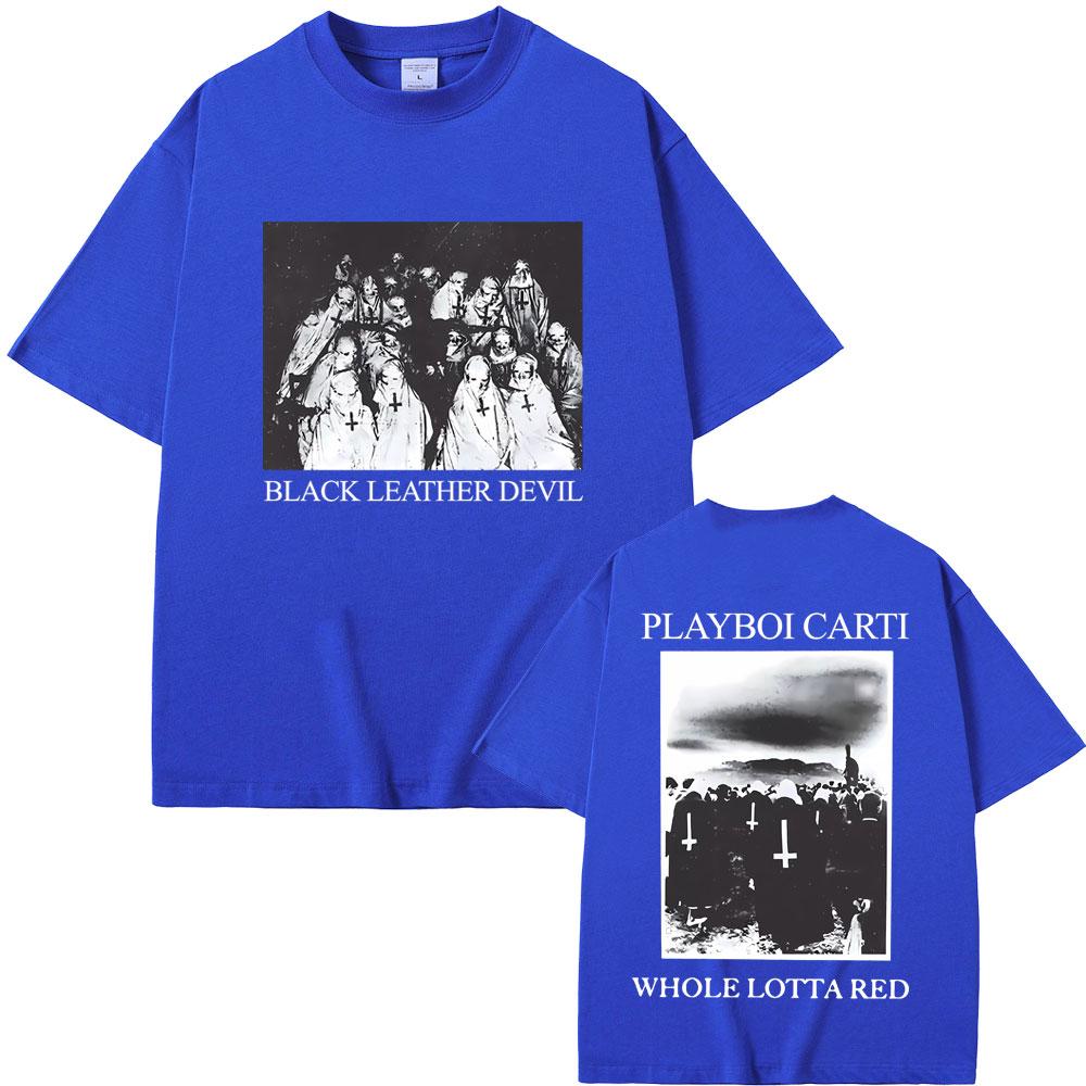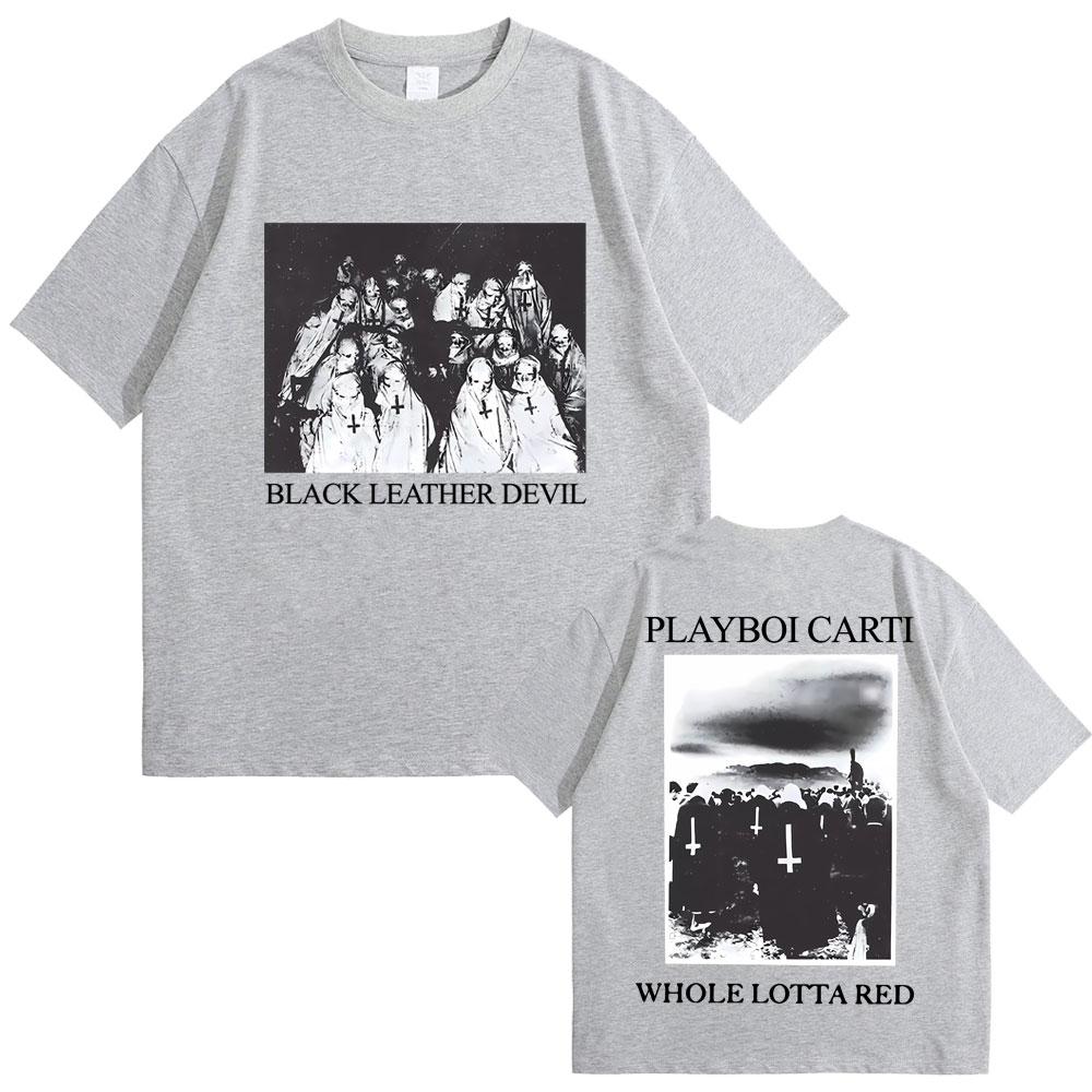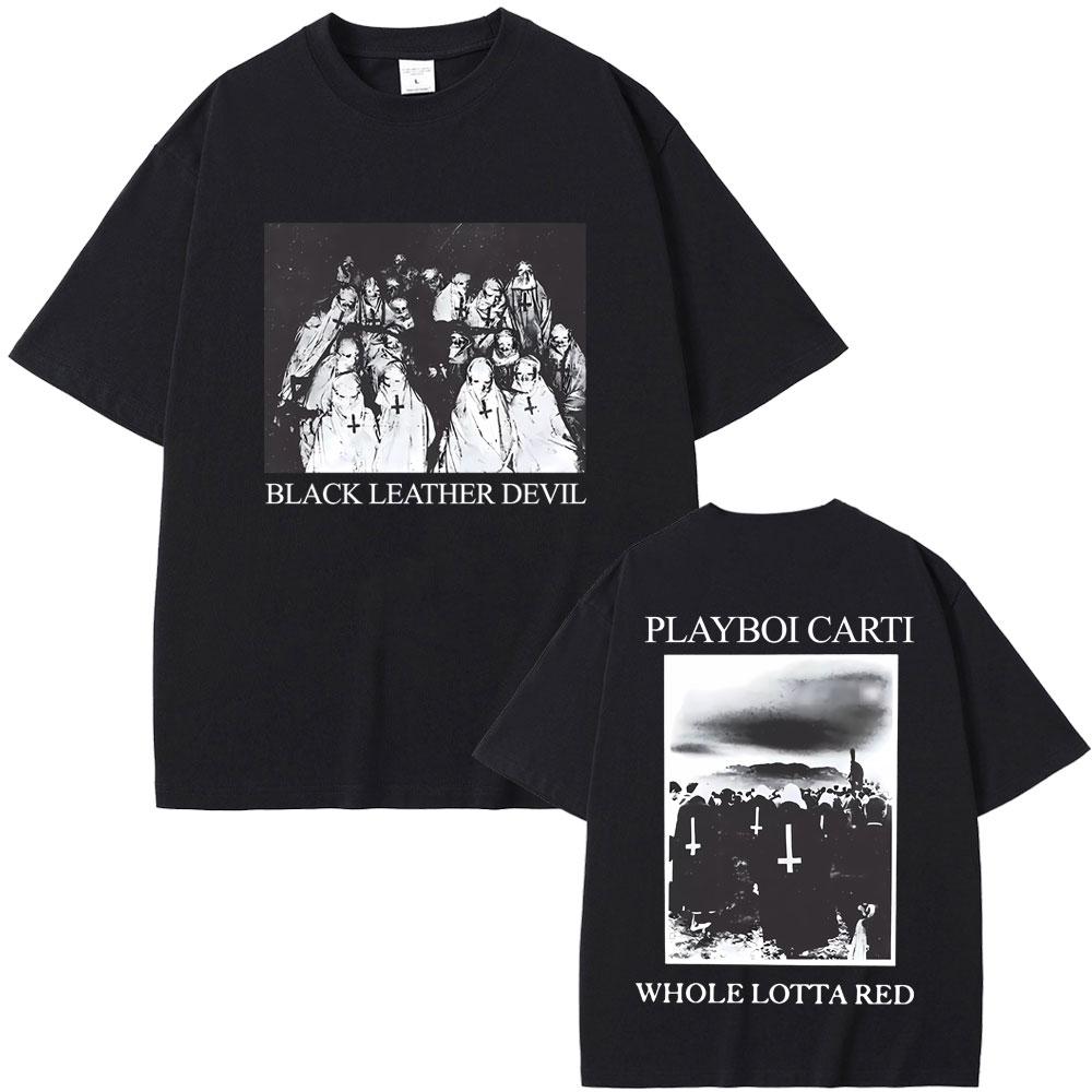 Рэпер Playboi Carti Черная кожаная футболка с графикой Devil Whole Lotta Red Мужская винтажная футболка оверсайз Крутая хип-хоп футболка Opium