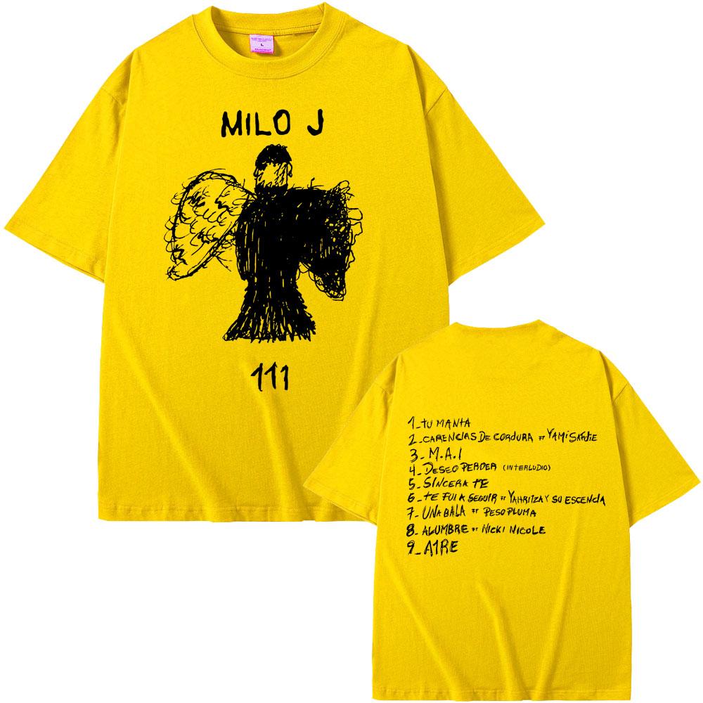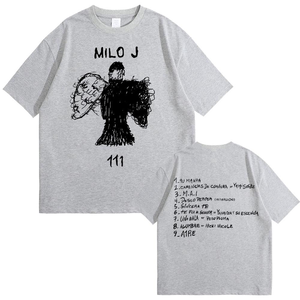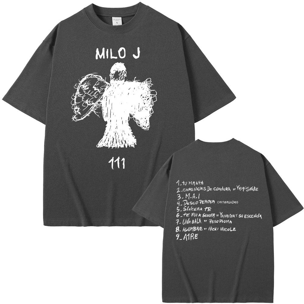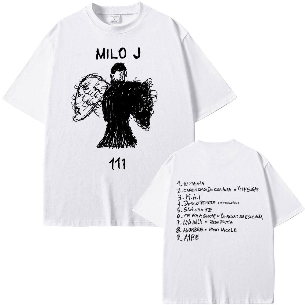 Футболка с двусторонним принтом альбома рэпера Milo J 111, мужская футболка в стиле хип-хоп, мужская рэп-футболка оверсайз, мужские хлопковые футболки