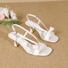 Белые сандалии женские летние бант простые и сексуальные квадратный носок тонкий каблук темперамент с юбкой высокий каблук