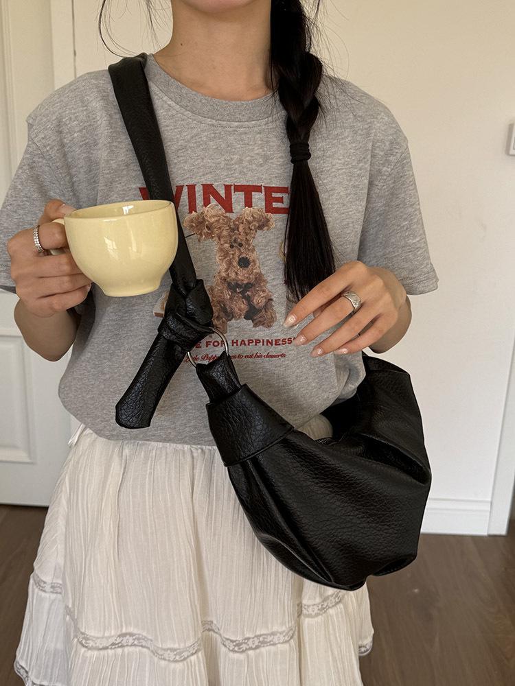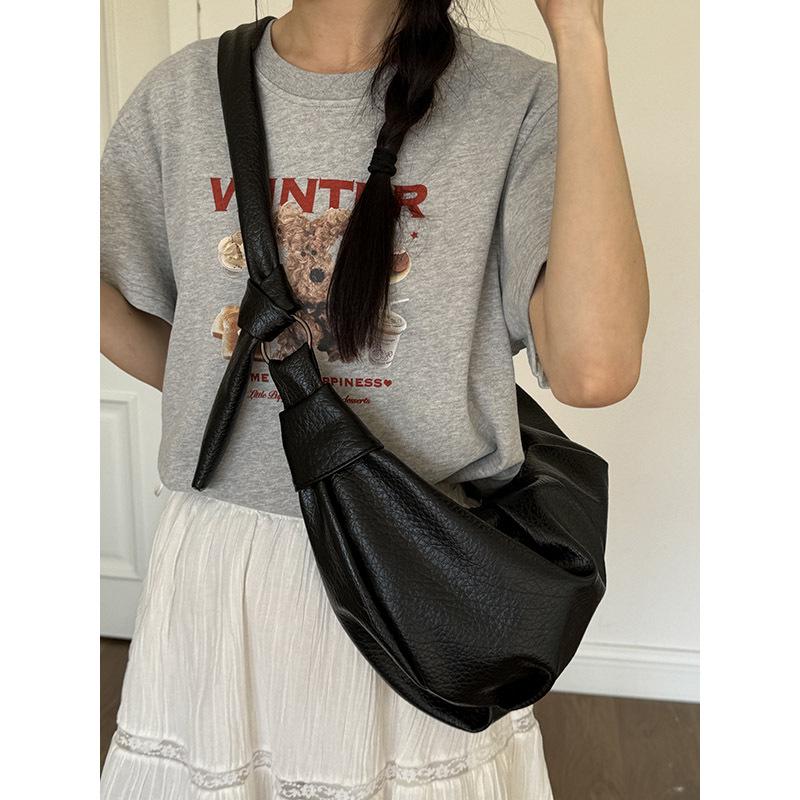 Корейская ретро-плиссированная кожаная сумка-пельмень большой вместимости - Повседневная, универсальная сумка через плечо/кроссбоди