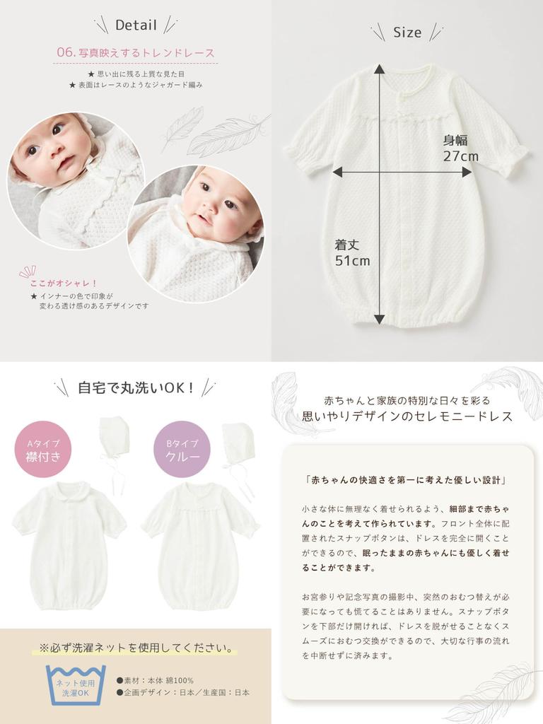 Baby Newborn Made in Japan Cotton Spring Summer Autumn Lacy Knit Dress Hat Set Ceremony Dress Shrine Visit White [ANGELIEBE] 100% & 50-70 (Crew)