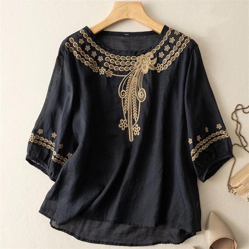 Женская льняно-хлопковая рубашка премиум-класса больших размеров с коротким рукавом - Лето 2025, китайский стиль — купить товар онлайн с бесплатной доставкой по всему миру!