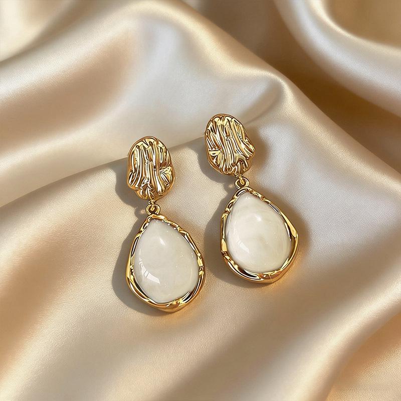 Янтарный Кофе Французский Ретро Роскошные Серьги - Женские Элегантные Пусеты с Нишевым Дизайном
