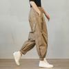 Женские брюки карго гаремы в корейском стиле: Свободный крой, эластичная талия, большой размер, манжеты на щиколотках, для лета и осени.