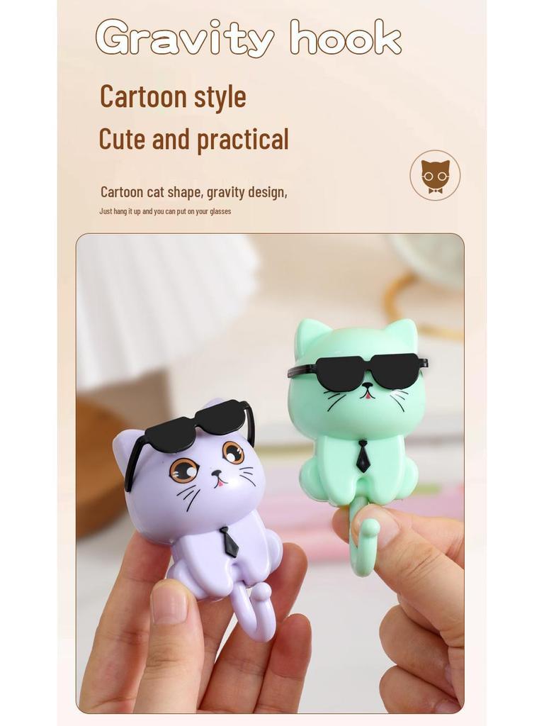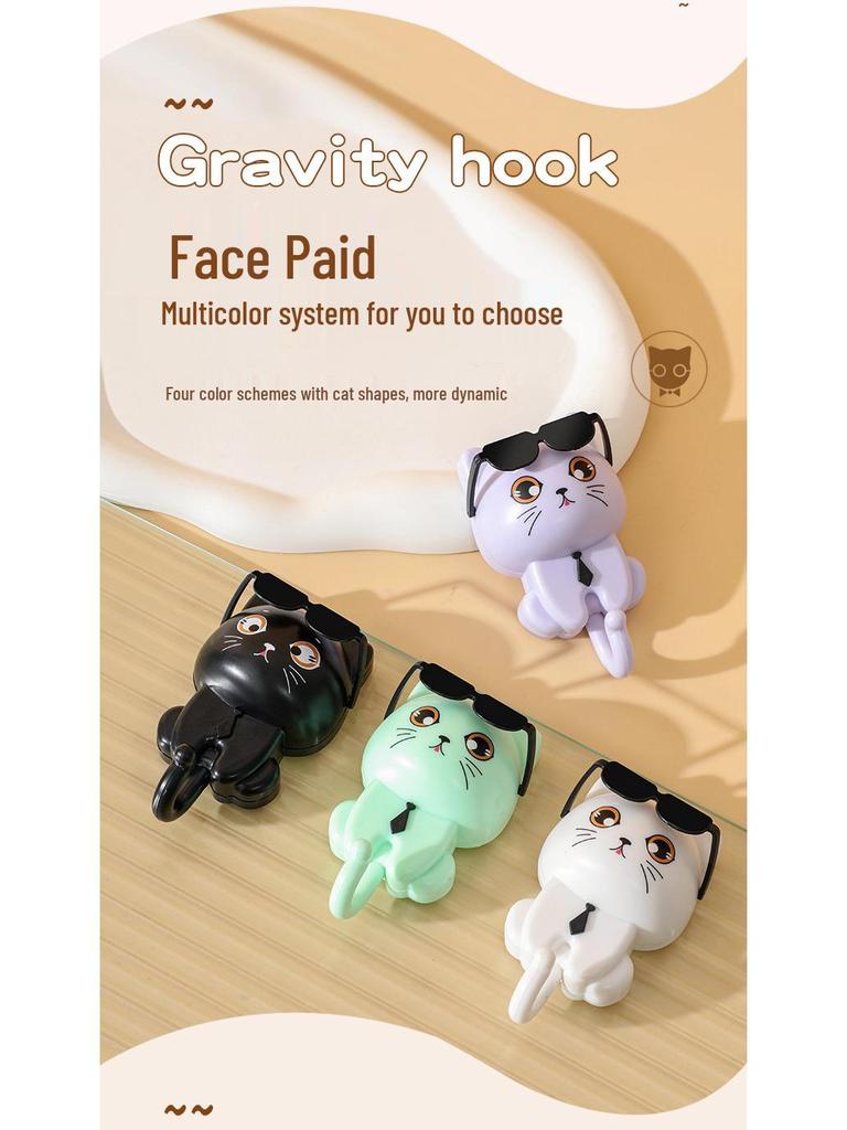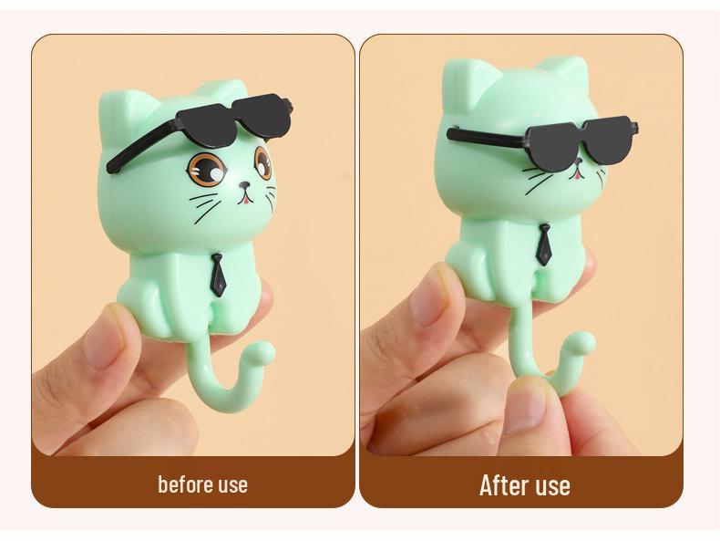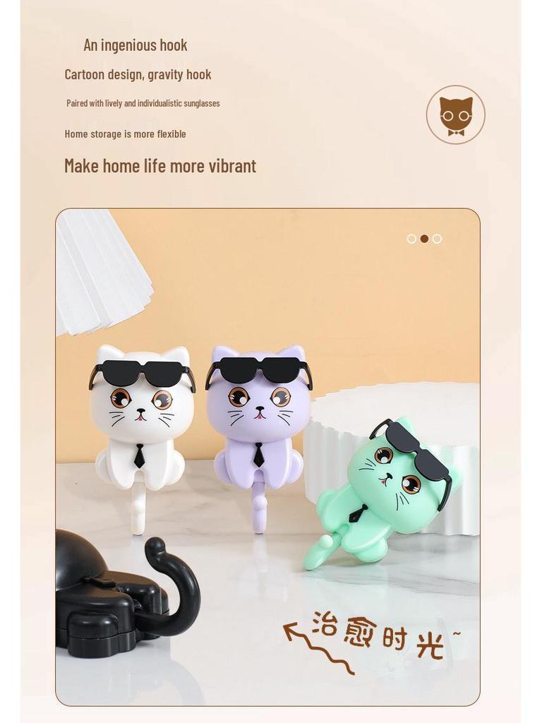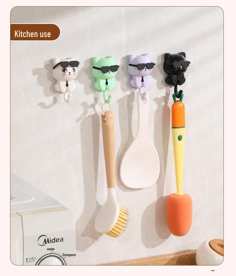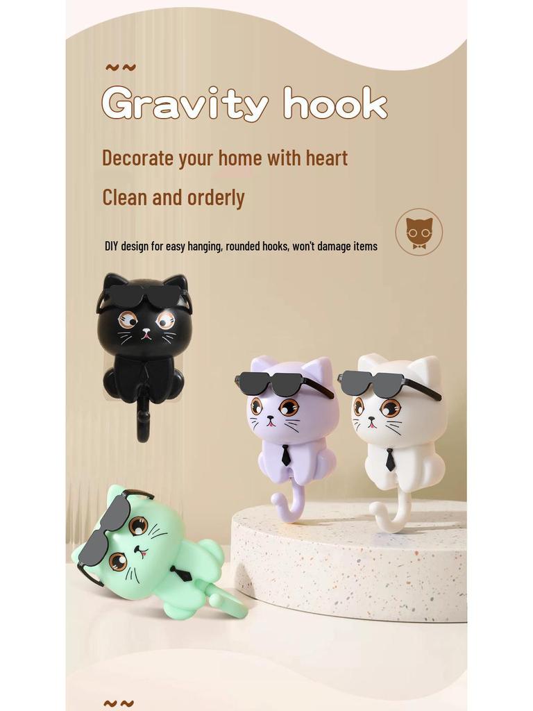 Креативный мультяшный самоклеящийся крючок в виде черного кота - Милый, с вращающимися глазами, не требует сверления, для одежды и ключей