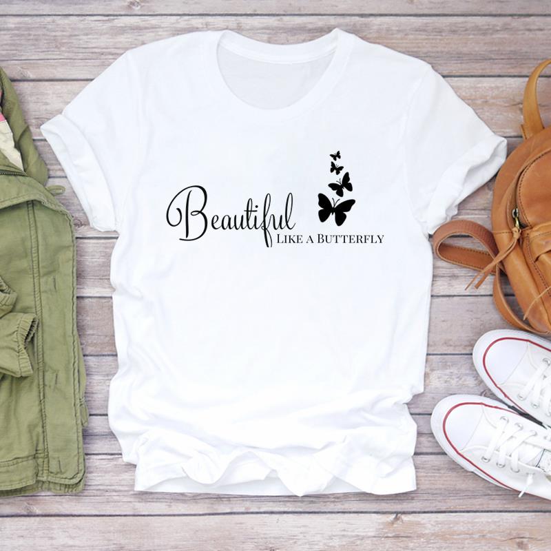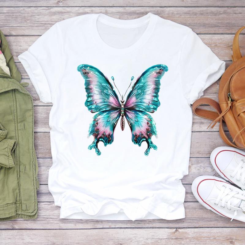 (Азиатский размер) Принт Женская футболка бабочка тренд милая 90-е Мода Женская одежда Повседневный топ Футболка с коротким рукавом Женские футболки с графическим принтом