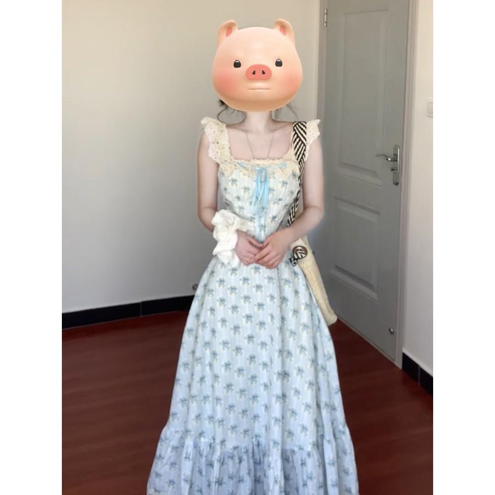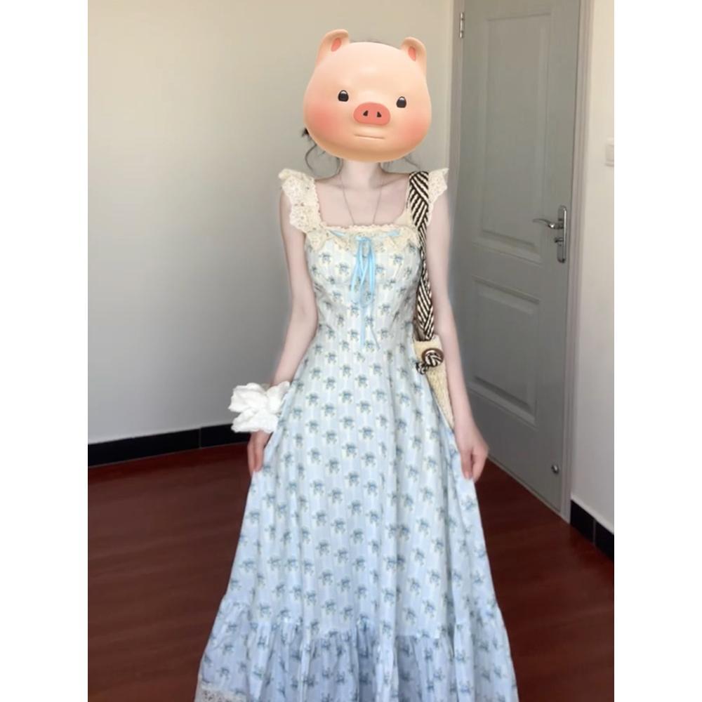 Синее цветочное платье-сарафан с квадратным вырезом, детский летний новый костюм для весны