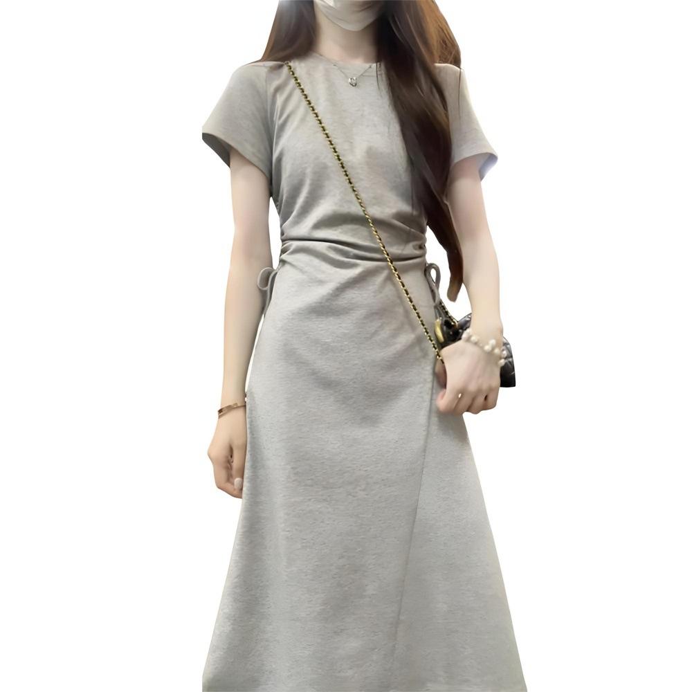 Серое платье для женского лета показывает высокую носкость с талией, средней длины и длинное платье
