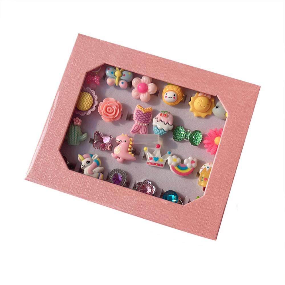 24 шт./набор Яркий цвет Мультяшные детские кольца Набор Мультяшные животные Набор колец Игрушка Девочки